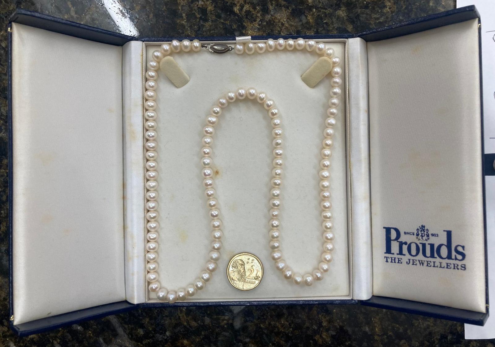 Retro pearl necklace in Prouds box