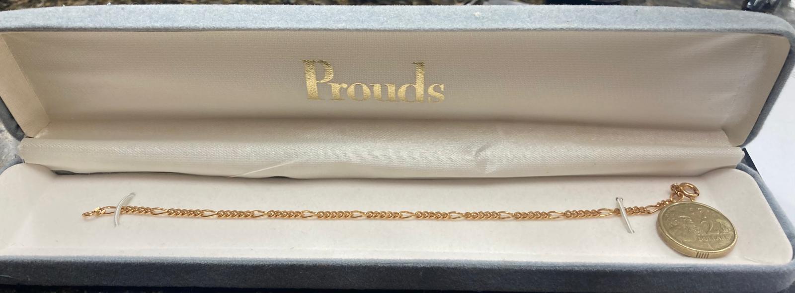 Small 9ct (.375) Italian made fine gold bracelet in original Prouds box
