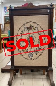 Antique embroidered fire screen