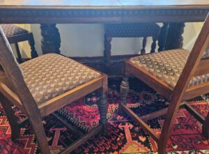 Jacobean style Beard Watsons table and six chairs