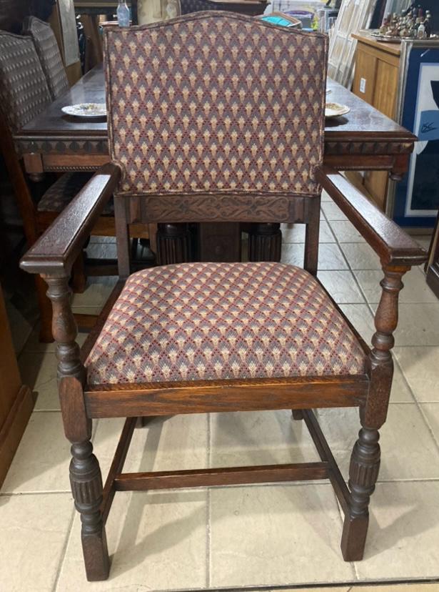 Nice quality early 20thc English oak Jacobean style heavy extending table with six chairs. Urgent sale.